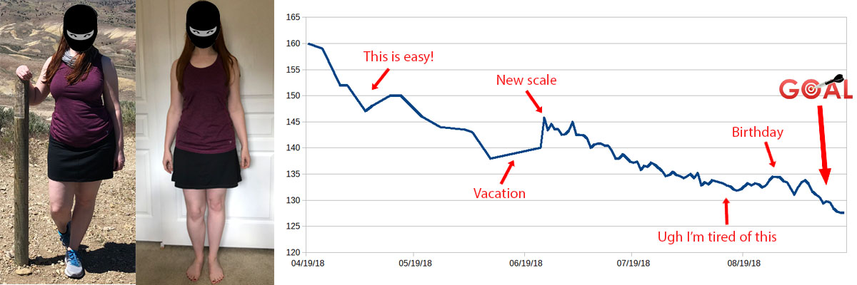 My rate of weight loss was really unexpected. I lost 10 pounds in the first couple of weeks, and then I was down 25 pounds in the first few months, but then it took me another 2 months to lose another 10. The initial success was extremely motivating and helped me to get through the lulls by showing me that I was on the right path.